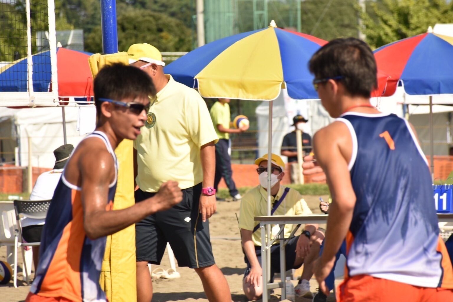 ・砂の上にネットを張って行う2人制のバレーボール